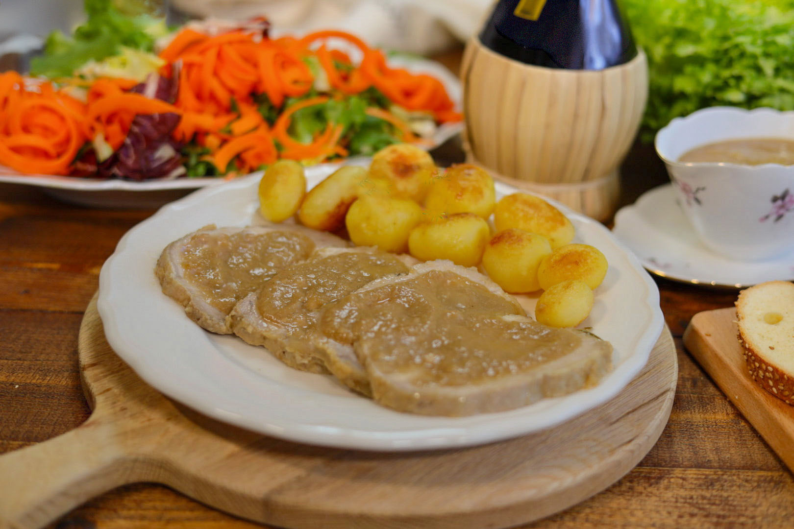 Una volta che la carne sarà cotta (un pezzo da 1 kg e duecento si cuoce in circa 40 minuti) facciamola raffreddare, togliamo lo spago da cucina, tagliamola a fette e poniamole su un piatto. Distribuiamo in superficie il sughetto di cottura con le cipolle oppure, in alternativa, passiamolo al mixer per renderlo più fine. Serviamo la carne tiepida accompagnandola con delle patate al forno o un’insalata.